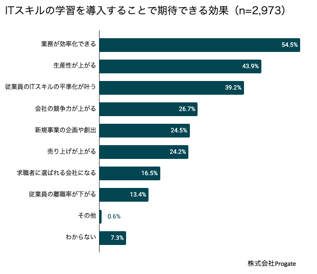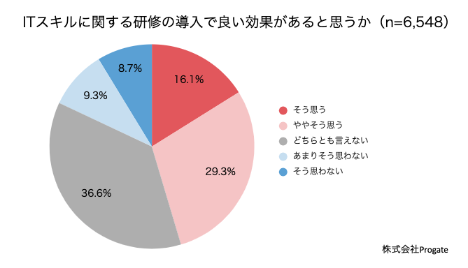 - ITスキル研修の導入、「良い効果があると思う」と45.4%が回答。「業務効率化」「生産性」「従業員のITスキル平準化」が期待できる効果