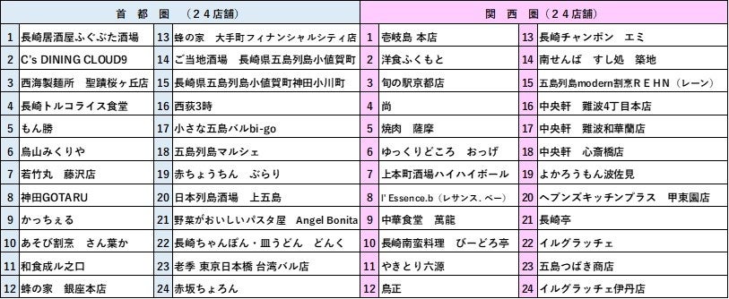 ※「極」店… 長崎県産食材にこだわり、「県産食材を使ったメニュー」及び「長崎ゆかりのメニュ
