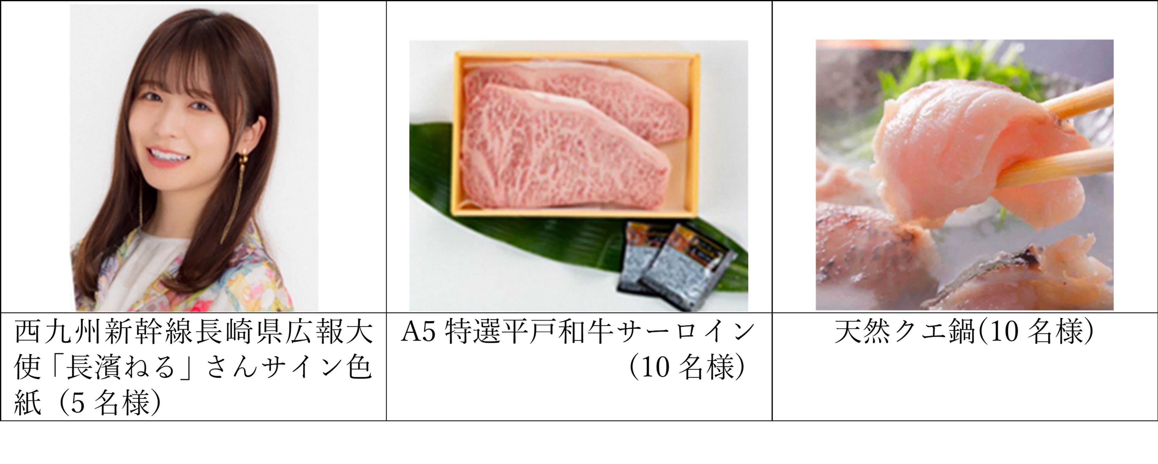 西九州新幹線長崎県広報大使 長濱ねるさんのサイン色紙や平戸和牛・天然クエ鍋などが抽選で当たる!