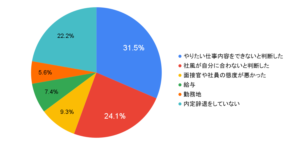 ■31%の学生が「やりたい仕事ができない」、24%が「社風が自分に合わない」と判断し、企業からの内定を辞退。