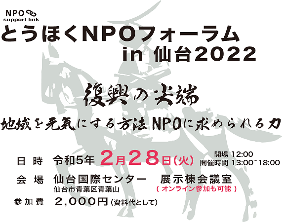 2/28開催 「とうほくNPOフォーラム in仙台2022」