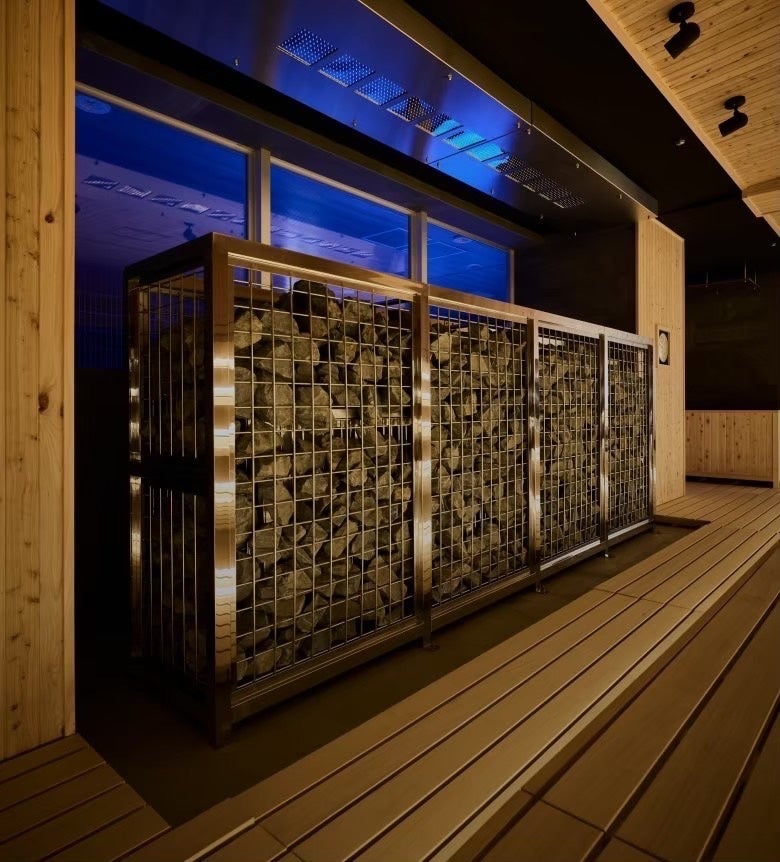 収容人数世界最大級のメガサウナ室を有するサウナ施設。居心地抜群のワーキングスペースに、モンスター級サウナストーブを備えた、最大100人着座可能なメガサウナ室。圧倒的なスケール感と没入感が人類未体験のととのいをお約束します。