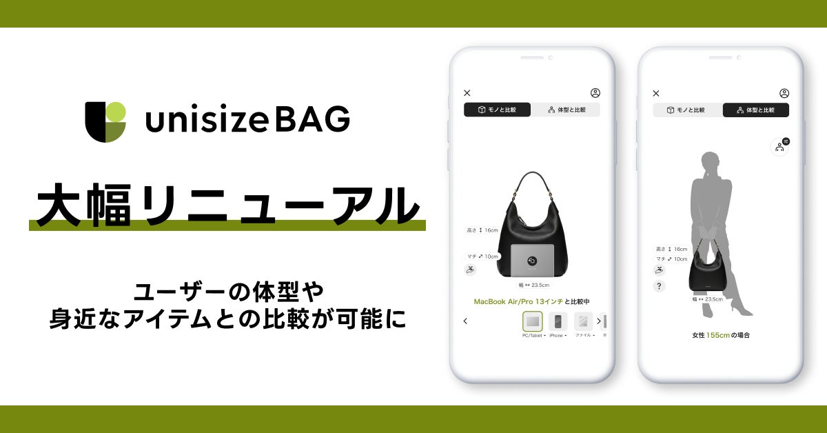 「unisizeBAG」が大幅リニューアル~ユーザーの体型や身近なアイテムとの比較が可能に~