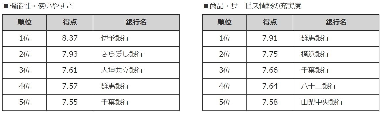 当ランキングでは、「機能性・使いやすさ」と「商品・サービス情報の充実度」の2つの視点から構成される183の調査項目により当社のアナリストが評価を行い、総合的に優れた地方銀行サイトのランキングを決定します。