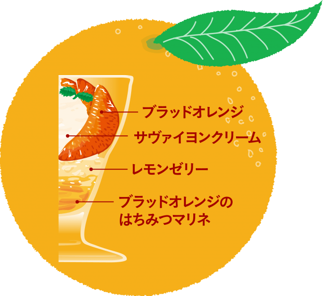 ブラッドオレンジのコクのある甘さと相性抜群のサヴァイヨンクリーム、レモンゼリーと一緒に、初夏の爽やかな甘さをお楽しみいただけます!