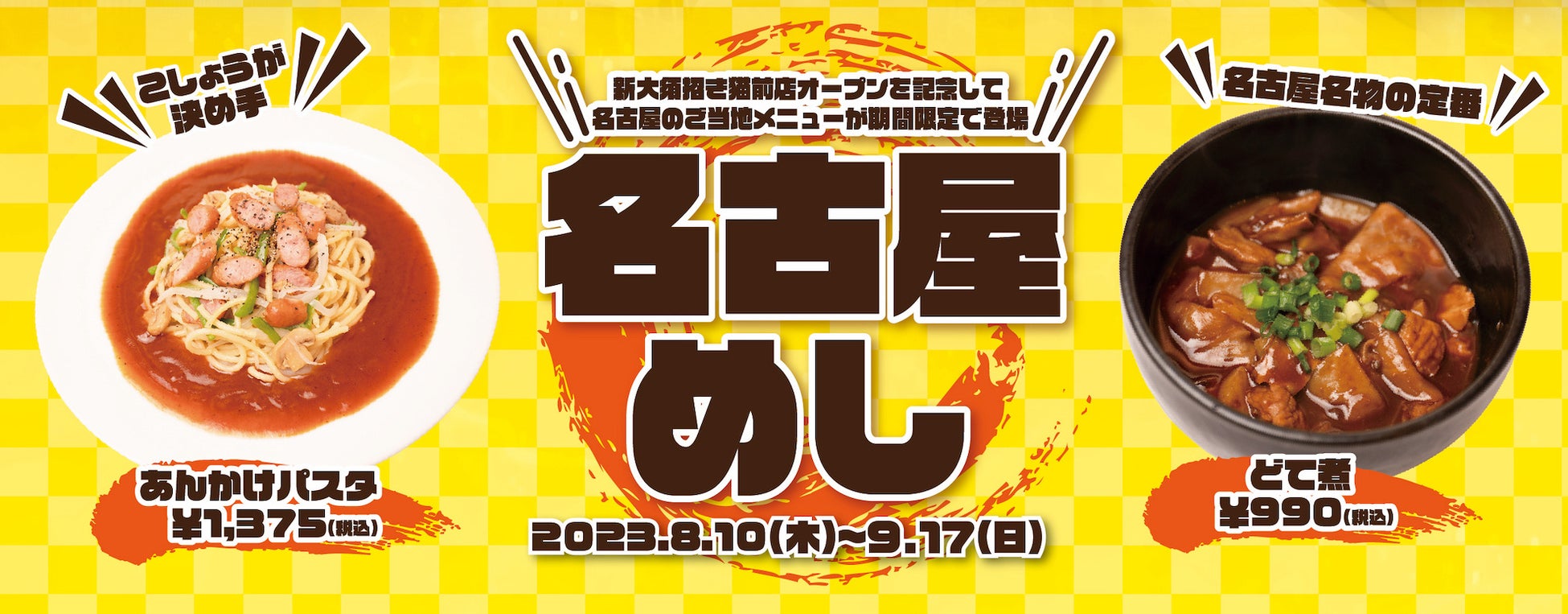 8月10日(木)より、「大須招き猫前店」移転リニューアルオープンを記念し、下記内容の「名古屋フェア」を開催いたします。