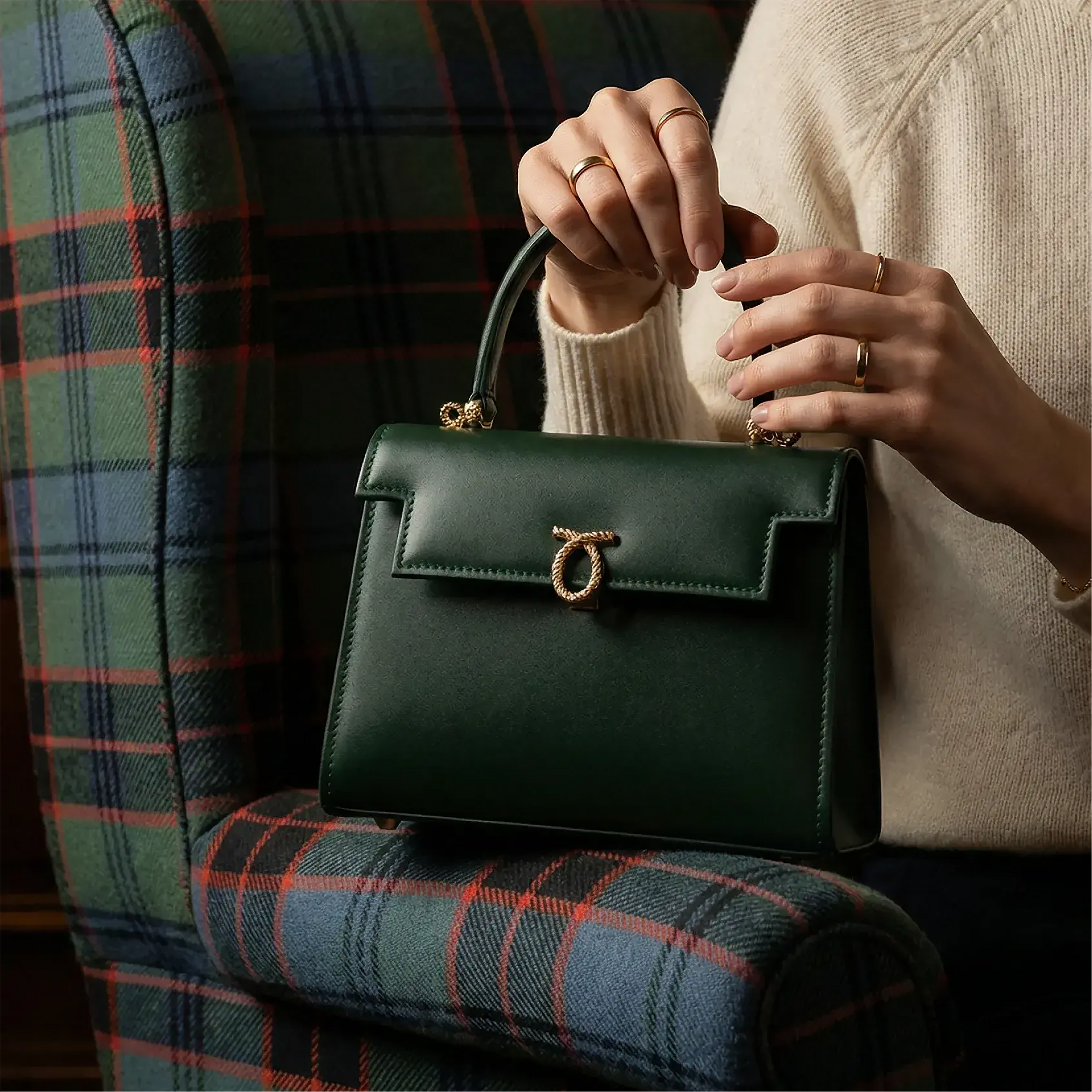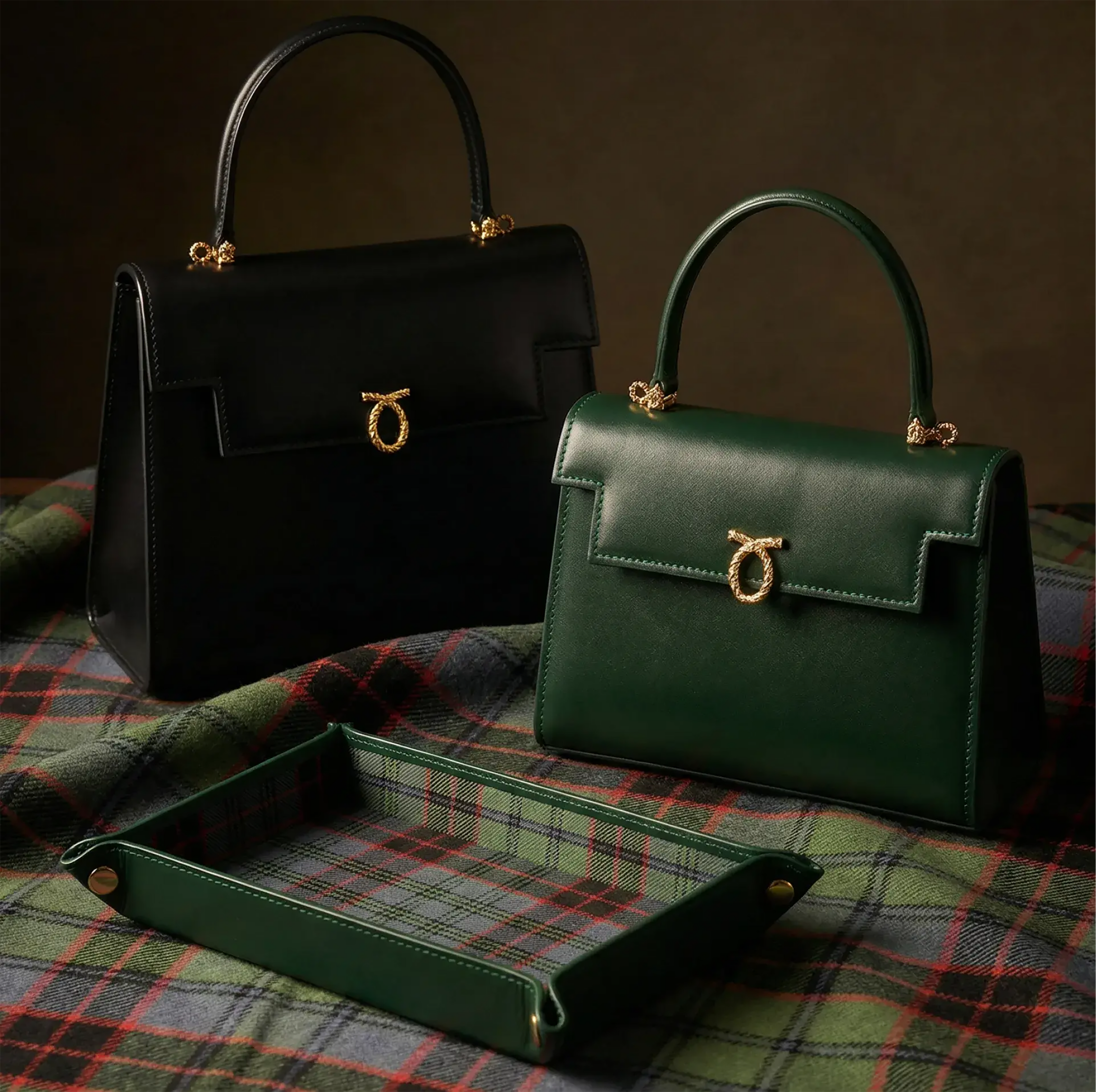 同ブランドのアイコンであり女王陛下も愛用されたハンドバック、トラヴィアータとジュディに、伝統豊かな手作りの作品で構成され、同じく王室御用達の「キンロック・アンダーソン」が手掛けた特注のオールド・エンシェント・スチュワート・タータンの裏地があしらわれた逸品です。