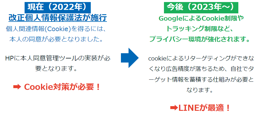 2023年からリターゲティング広告が難しくなるため、圧倒的なユーザー数のLINEを利用して