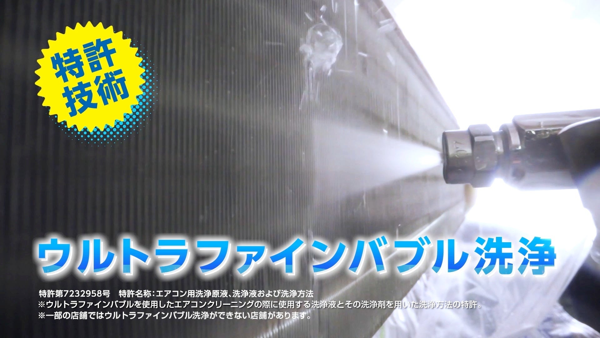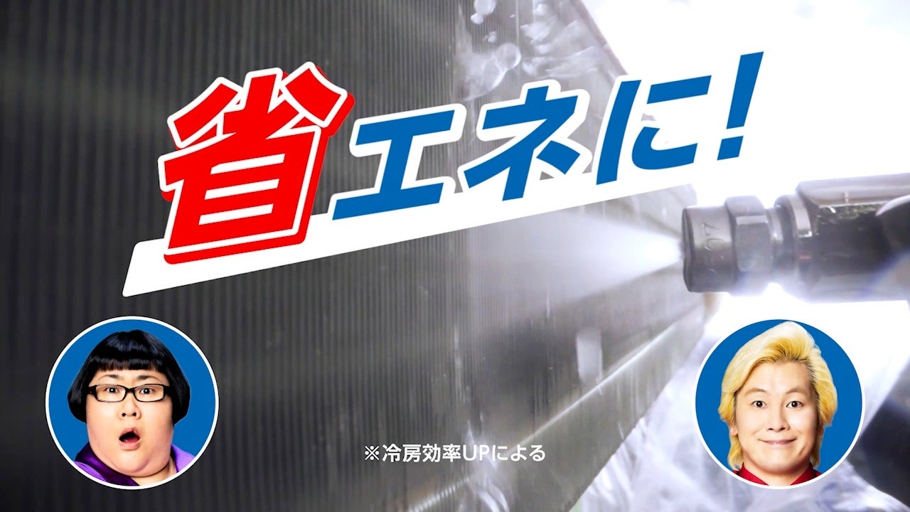 当社はウルトラファインバブル(※2)を使用したエアコンの洗浄方法及び洗浄液について特許を取得しております。エアコンの洗浄によってエアコンの冷房効果がアップ し、省エネになる効果をメイプル超合金のお二人がテンポの良く展開します。