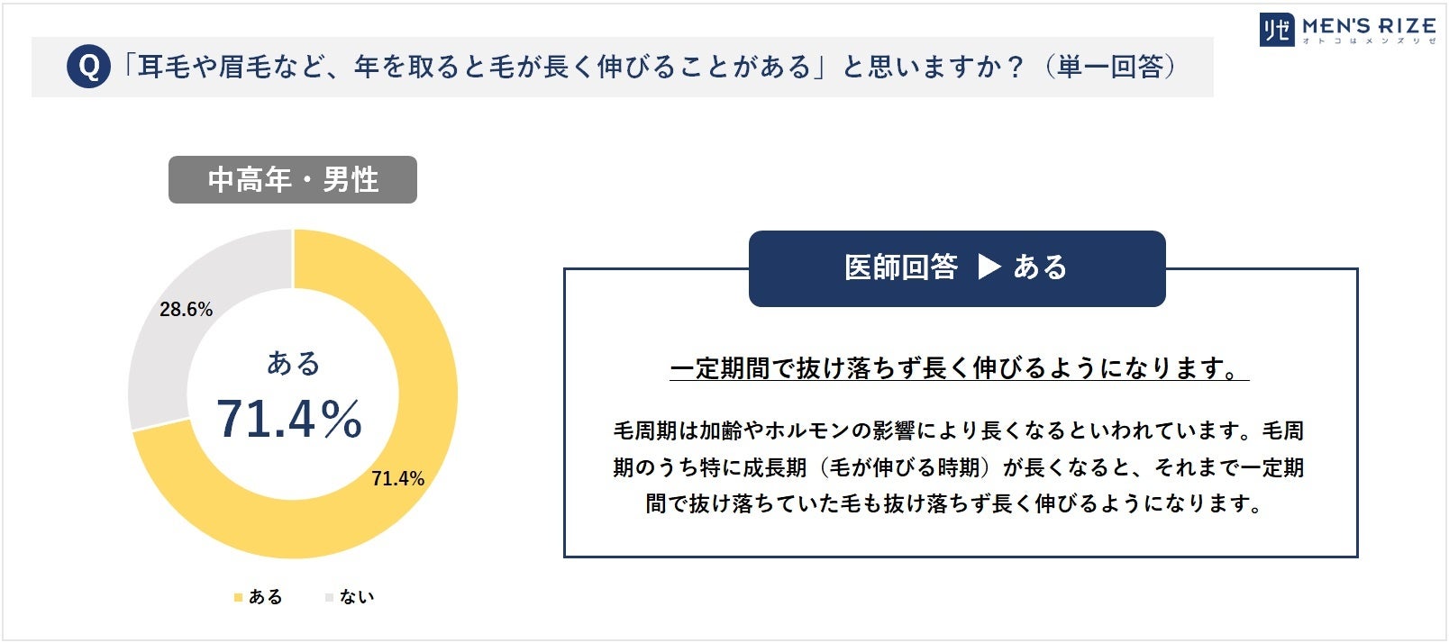 ■ミドル・シニア世代の男性660名へ「毛にまつわる真偽」を調査!《世間のウワサ》vs《医師のホンネ》/その真意を専門医が徹底解説