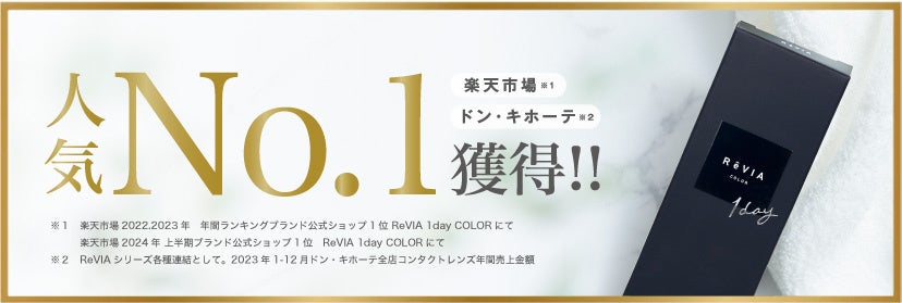これまでに、“楽天市場2022・2023年年間ランキングブランド公式ショップ1位2年連続受賞”、“2024年楽天上半期ブランド公式ショップ1位受賞” 楽天市場で取り扱われる全商品の中から選出されました。ドン・キホーテでもReVIAシリーズとしてシェア率 NO.1 を誇り(※)、2016年の誕生以降、幅広い世代から支持を得るブランドに成長。