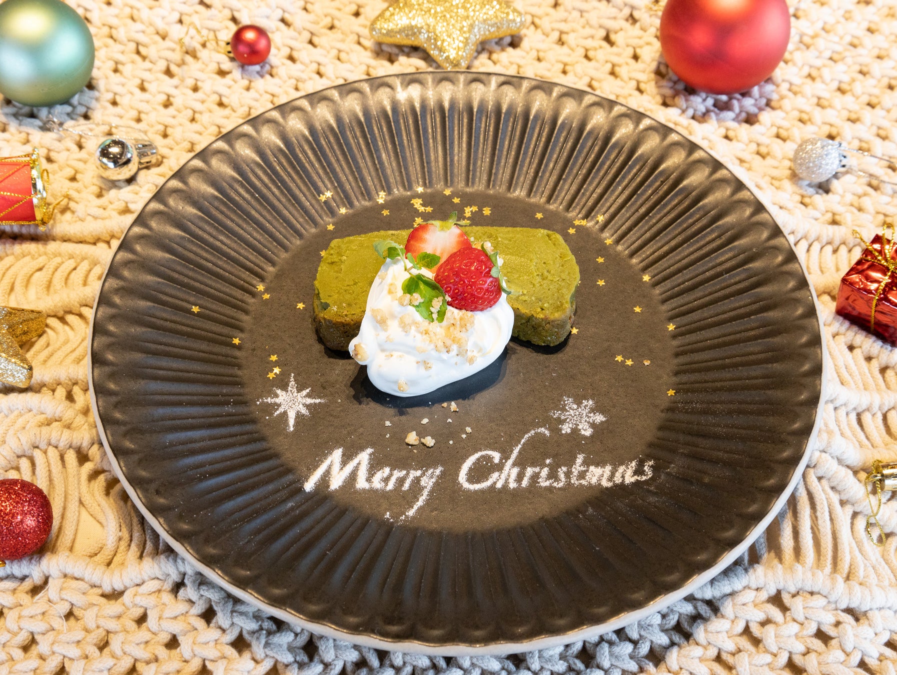 また、THE FARMカフェではランチタイム限定で特別なデザートを販売中。初物いちごを添えた、抹茶風味のチョコテリーヌです。色も華やか、かつ濃厚な味が楽しめる冬のデザートをどうぞ。