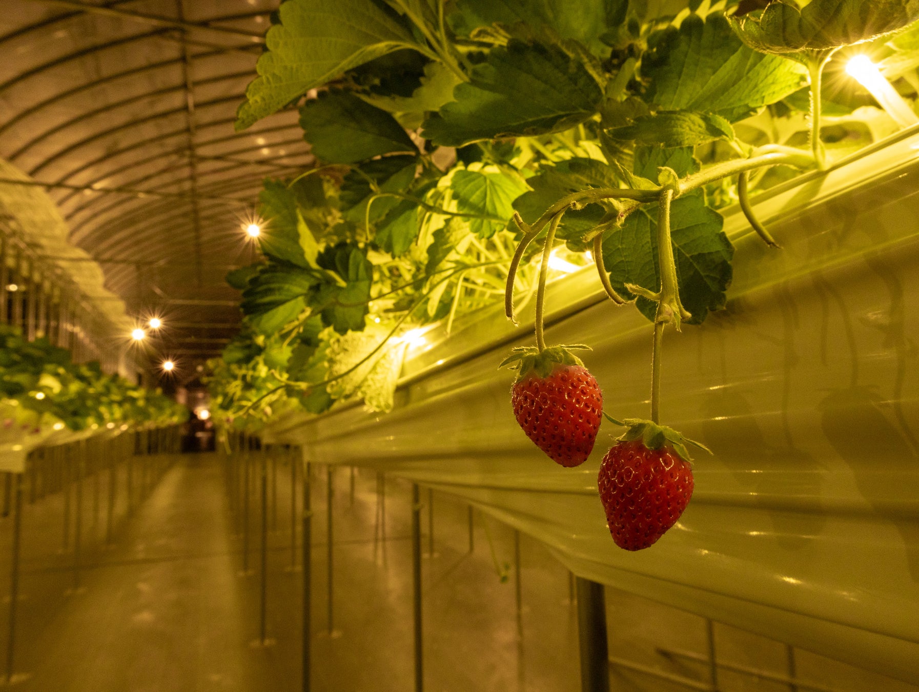 最先端の環境制御システムによって、いちごの生育に最適な温度と湿度を 24 時間管理。