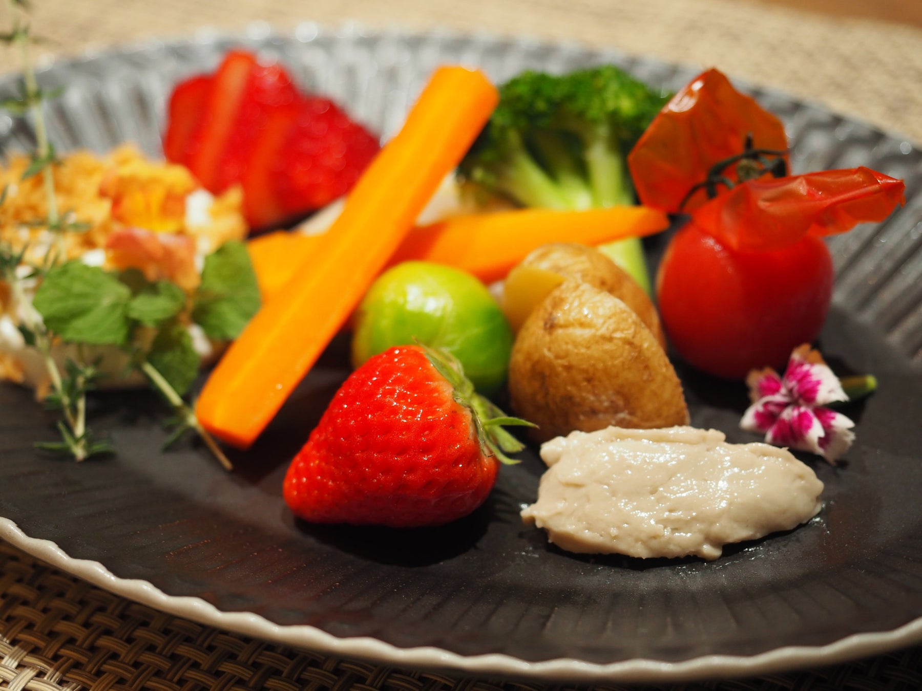 園内に併設のTHE FARMカフェでは、星空いちご園の完熟いちごを使用した前菜やデザートを盛り込んだ「Farmer's Harvest Dinner」も期間限定で提供いたします(事前予約制)。