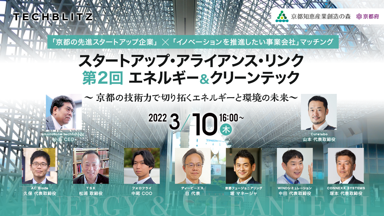 3/10(木)開催ピッチイベント スタートアップ・アライアンス・リンク第2回 【エネルギー&クリーンテック】〜京都の技術力で切り拓く エネルギーと環境の未来〜