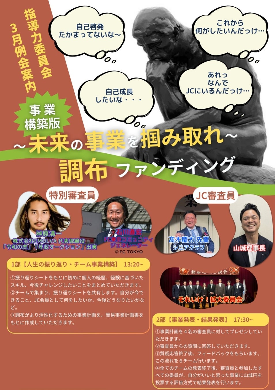 代表・榊󠄀原清一が、(公)調布青年会議所主催「〜未来の事業を掴み取れ〜調布ファンディング」にて、審査員をつとめました
