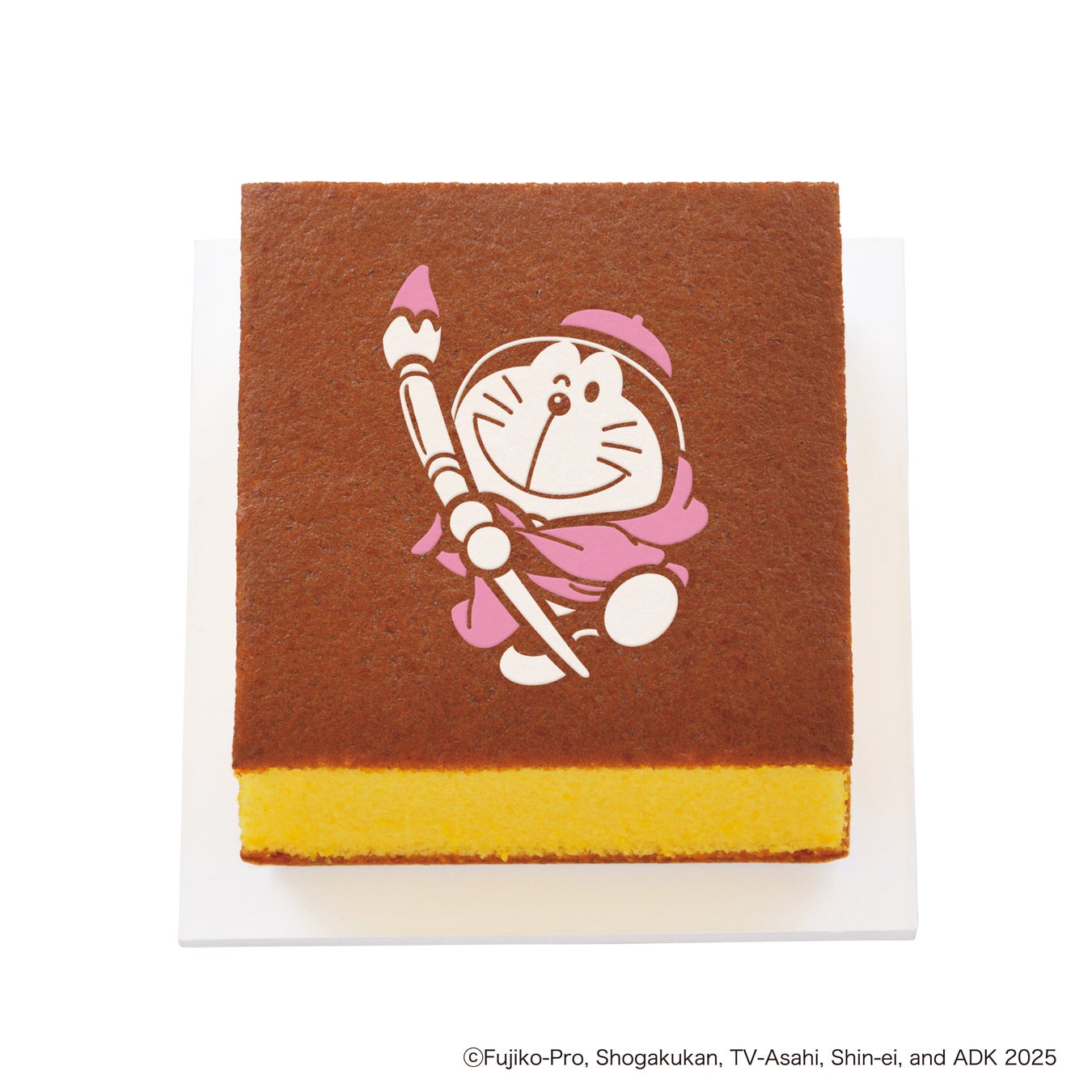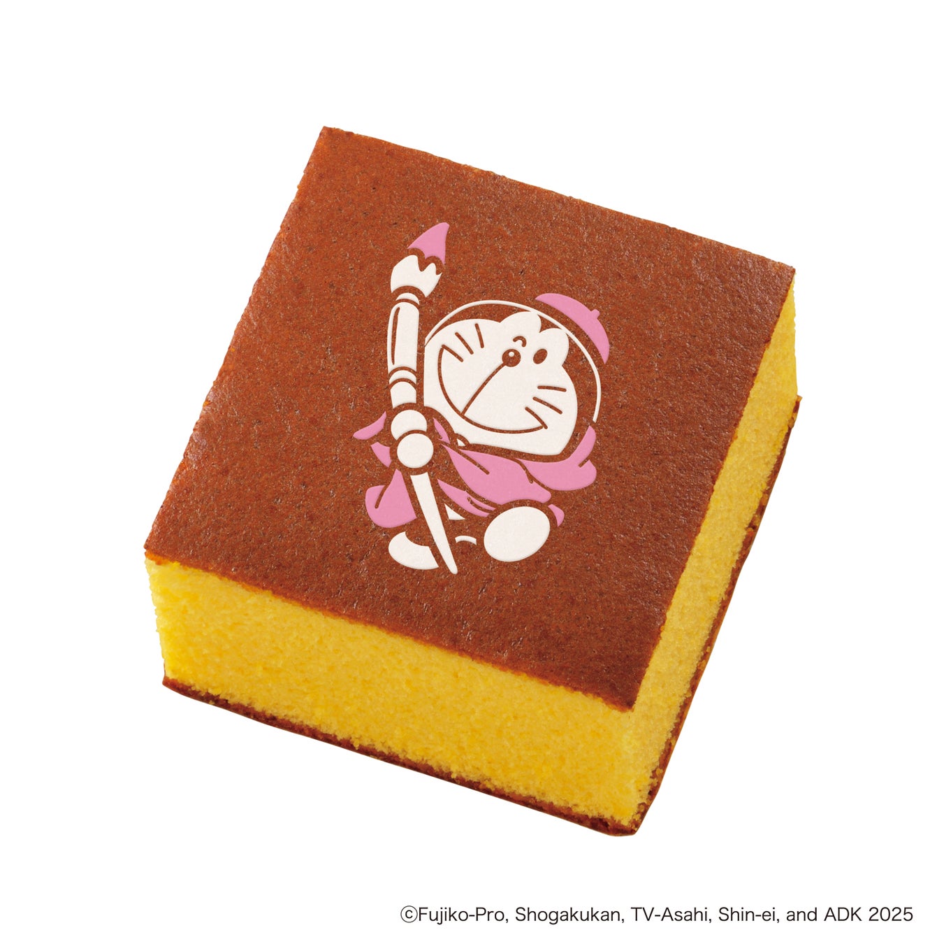 カステラも映画限定デザイン!アートな装いのドラえもんが絵筆を持ってかわいくポーズを決めています。