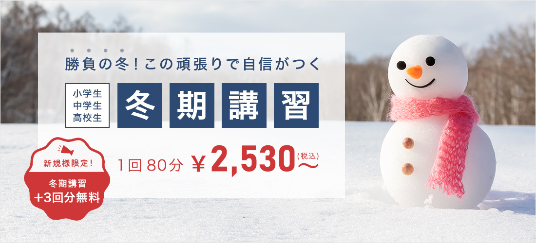新規お申し込みの方限定で80分の冬期講習が3回無料となるキャンペーンも行っております!