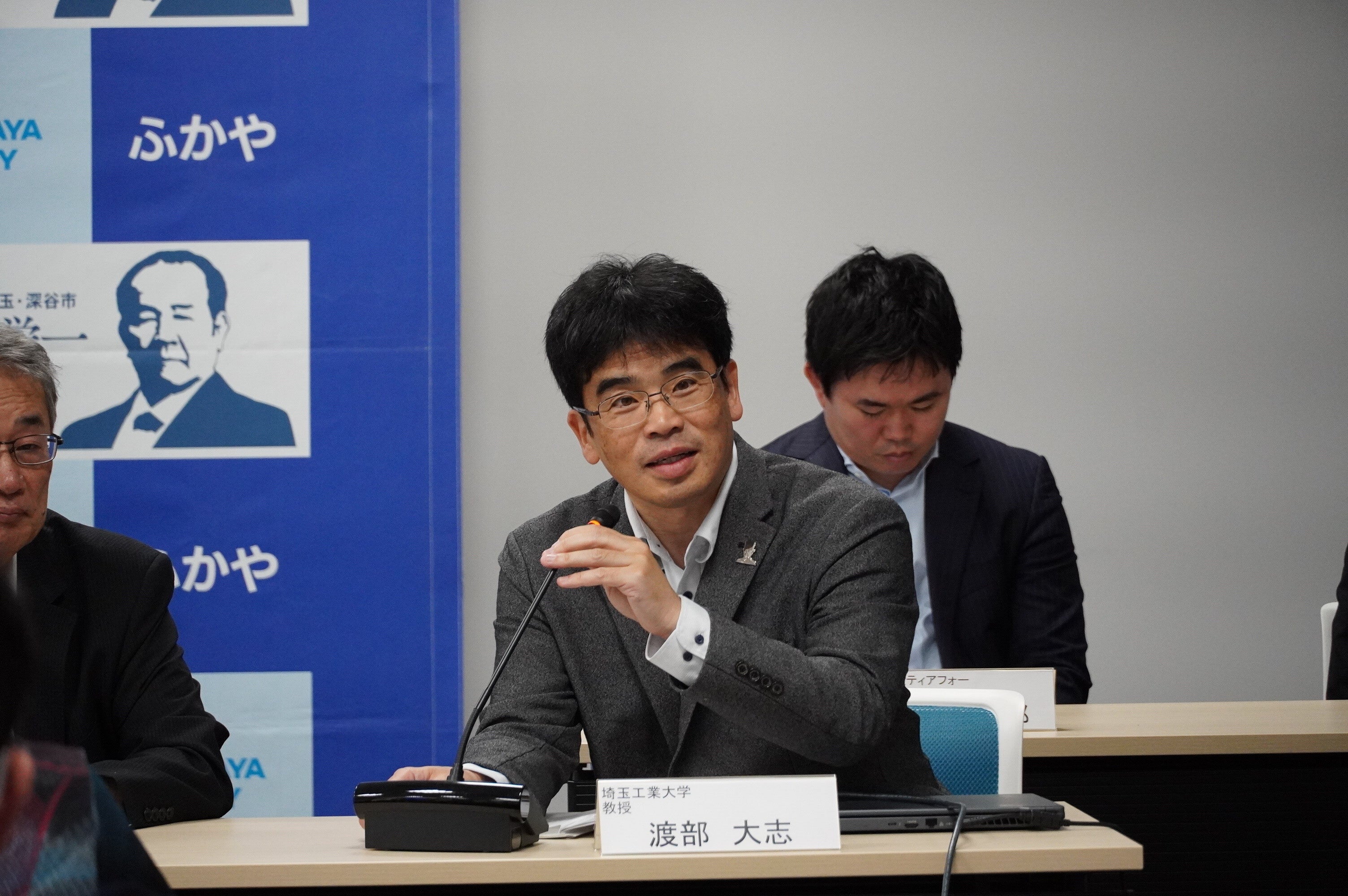 ▲連携協定を締結した連携事業者の代表者と研究に取り組む埼玉工業大学渡部大志教授