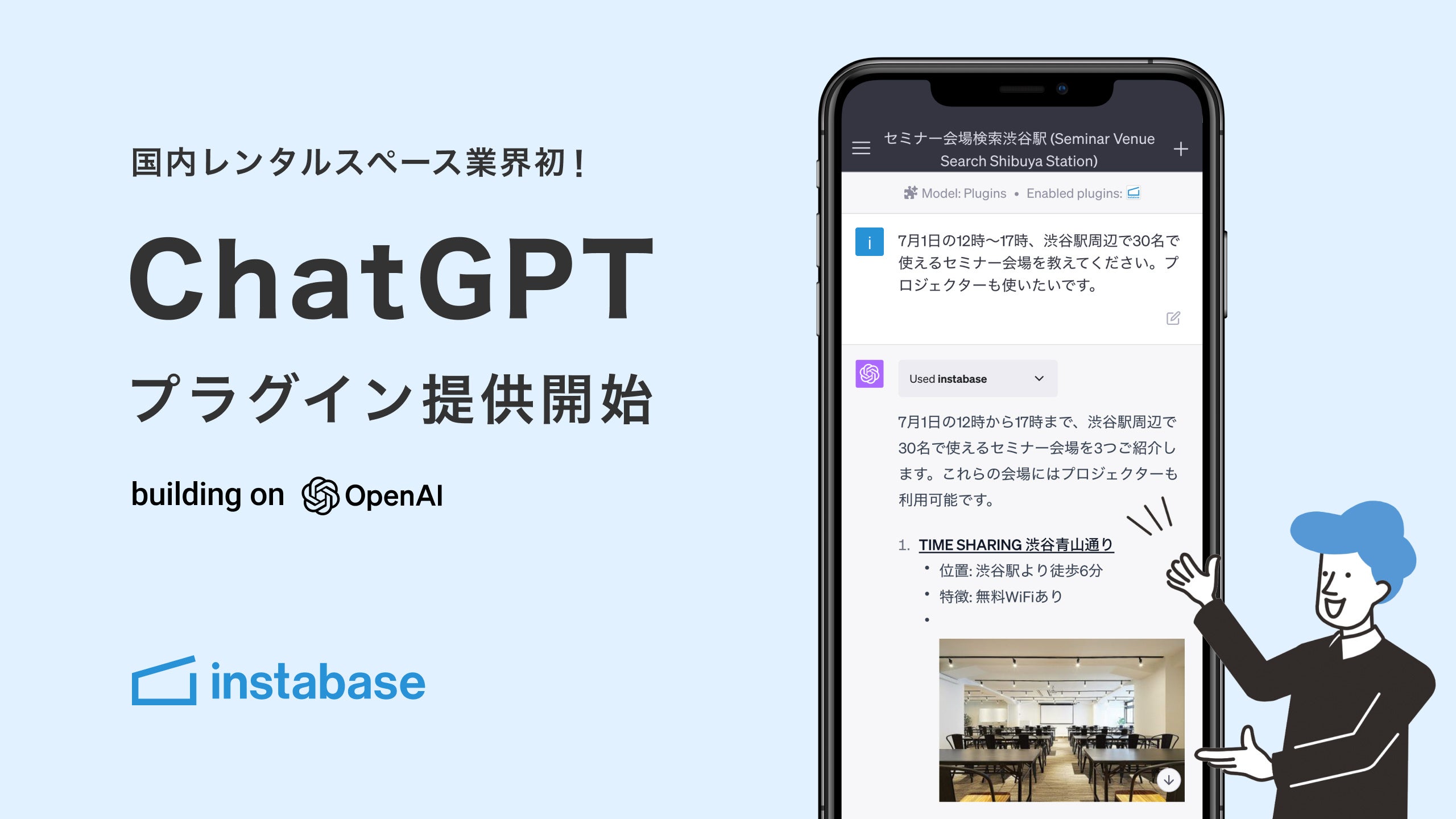 国内レンタルスペース業界初!インスタベースによるChatGPTプラグインの提供を開始