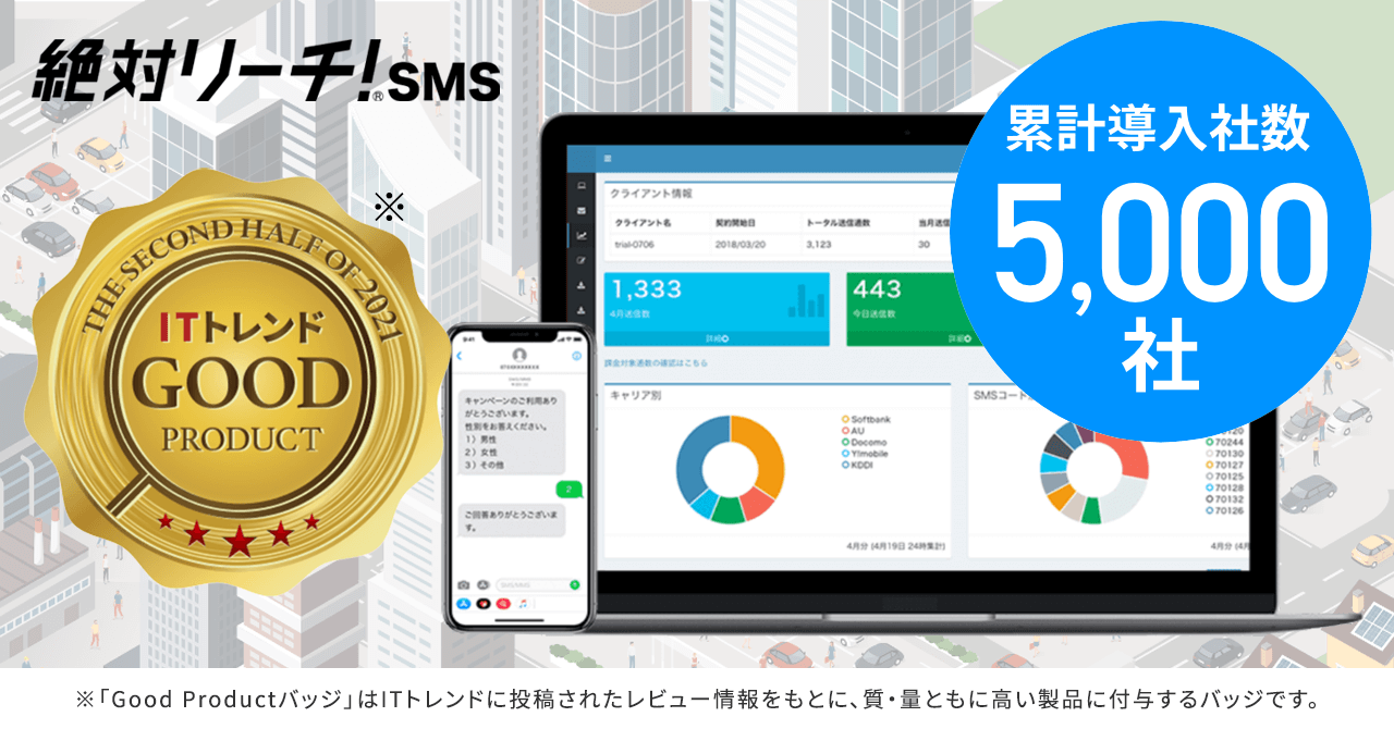SMS配信サービス「絶対リーチ!SMS」、累計導入社数5,000社を達成