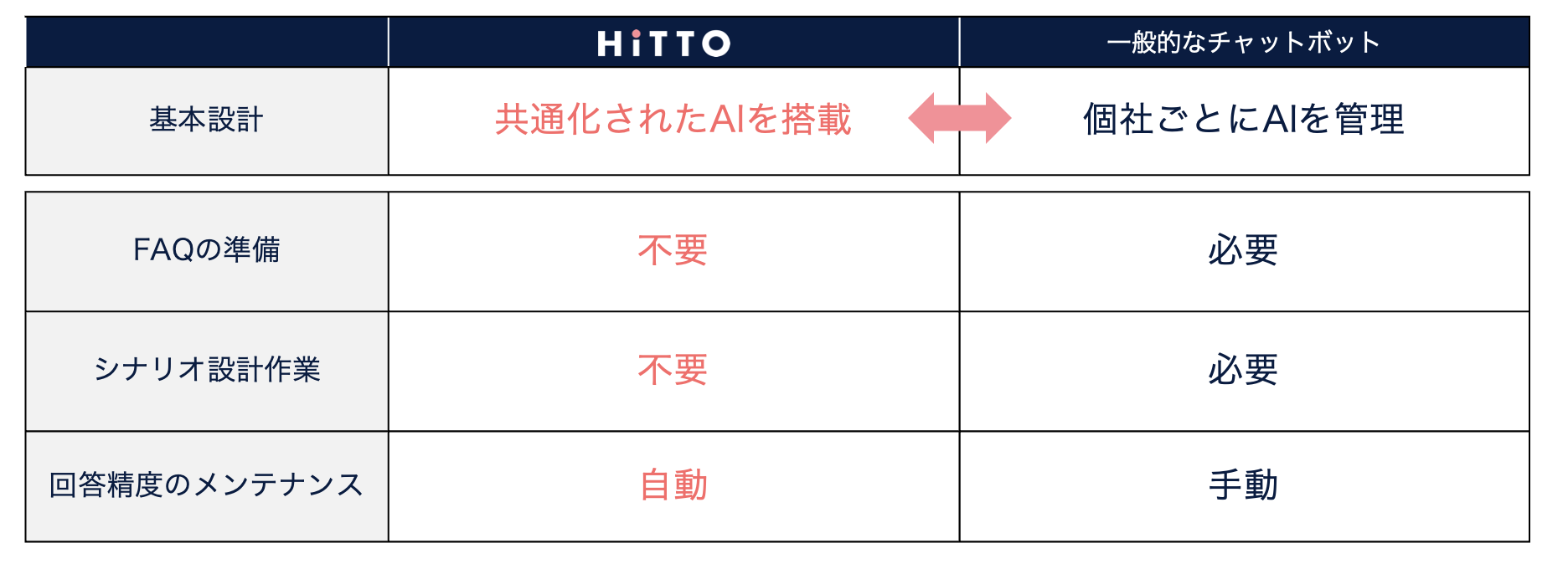※HiTTOと一般的なAIチャットボットの違い