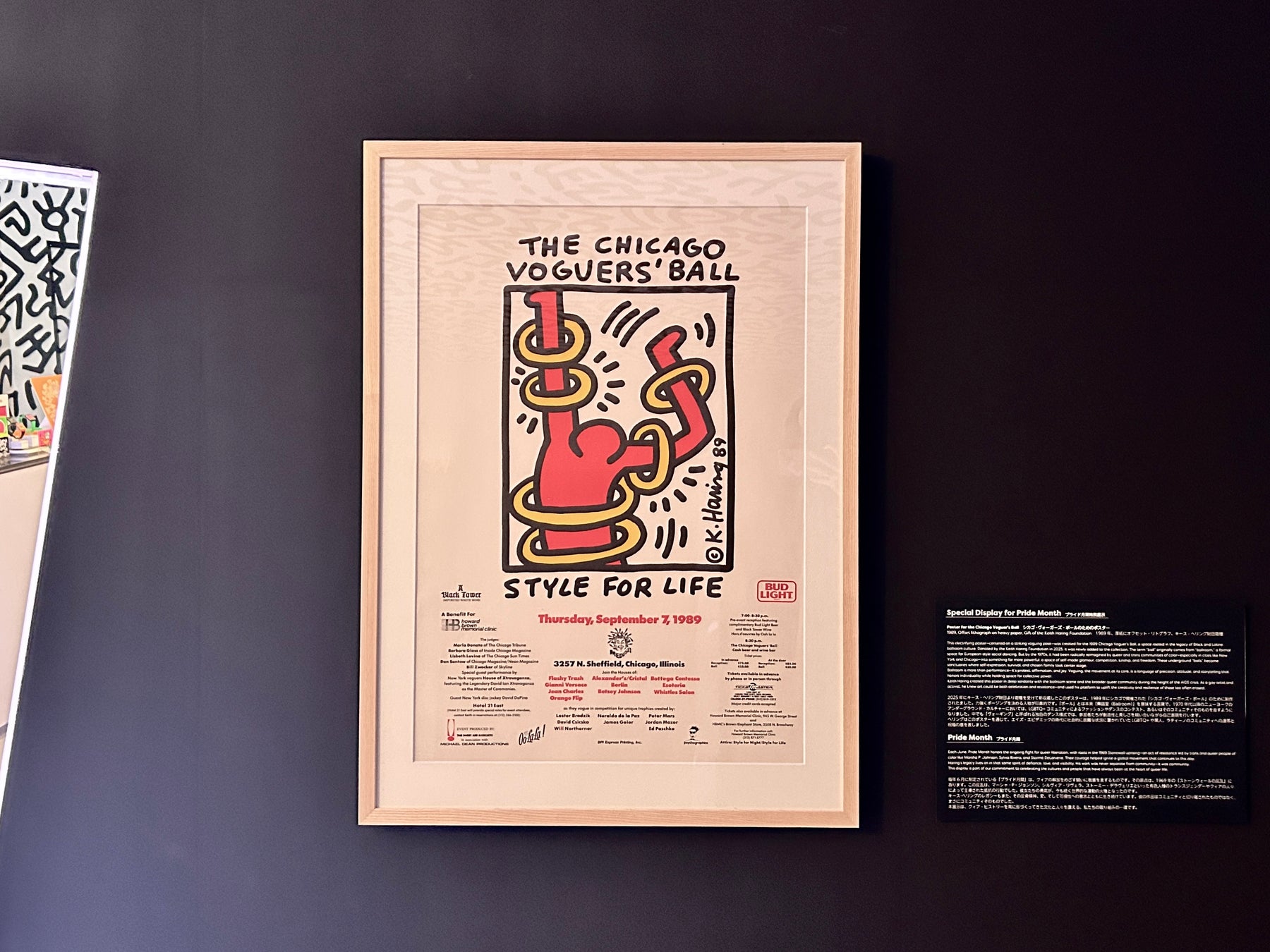 館内にて、今年キース・ヘリング財団(ニューヨーク)より寄贈を受けたポスター《シカゴ・ヴォーガーズ・ボールのためのポスター》を、6月末まで特別展示しています。