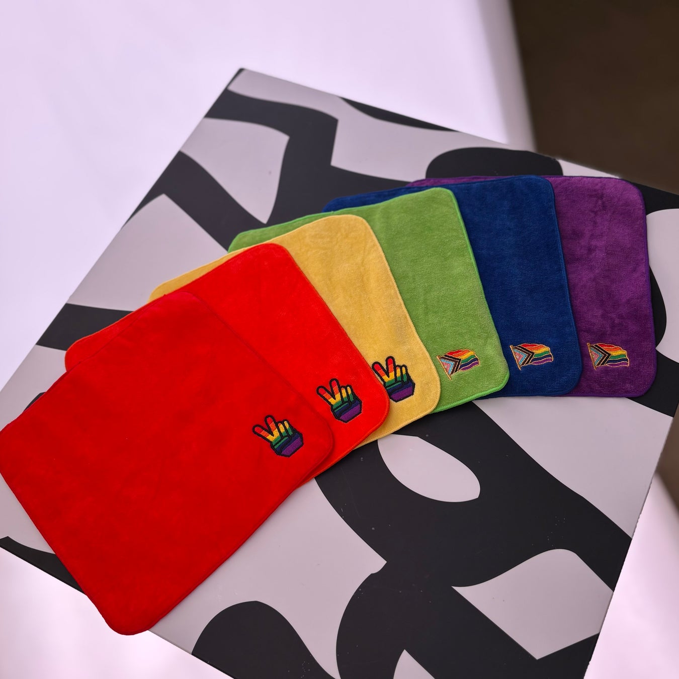 プライド月間に合わせ、レインボーカラーを基調とした当館オリジナルのタオル2種類・Tシャツ2種類を新たに制作しました。日常使いしやすいデザインとカラーにこだわり、誰もが自然に手に取れる仕上がりとなっています。