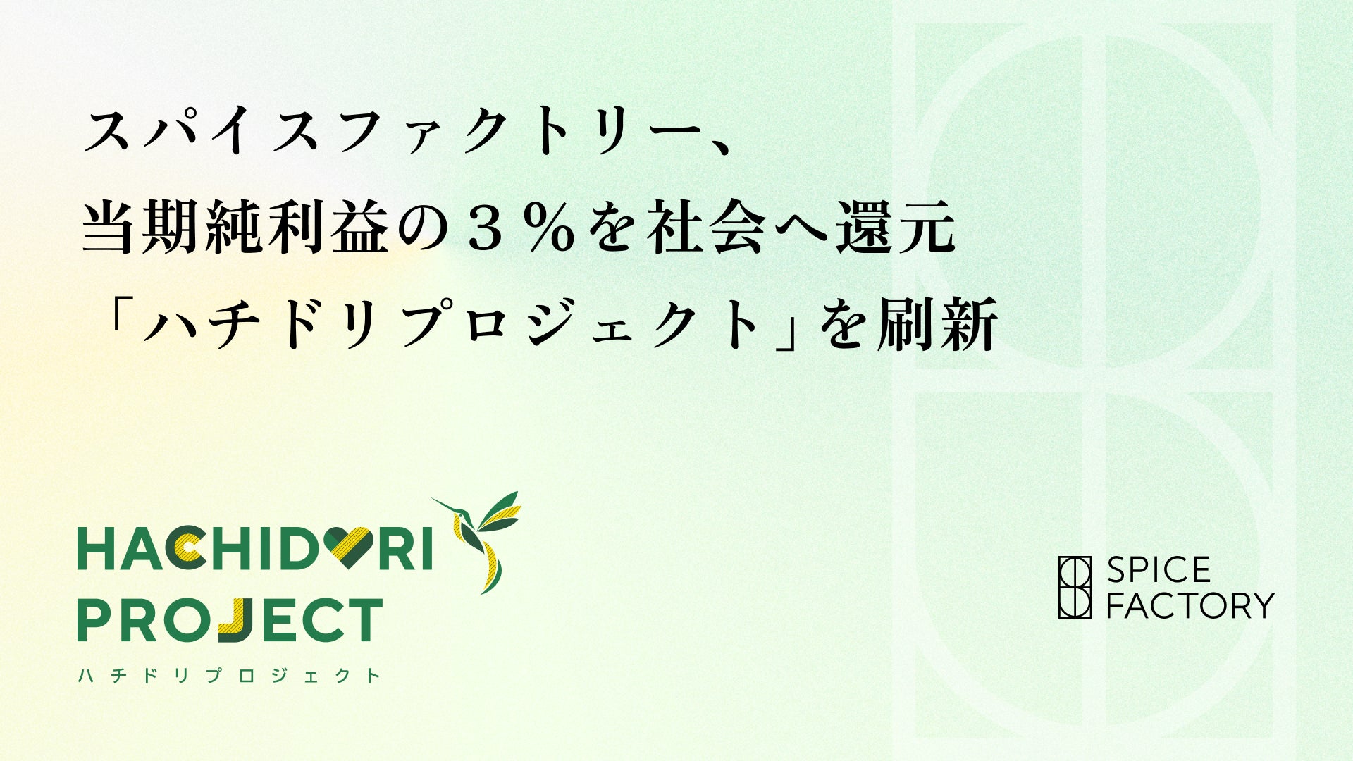 スパイスファクトリー、当期純利益の3%を社会へ還元「ハチドリプロジェクト」を刷新