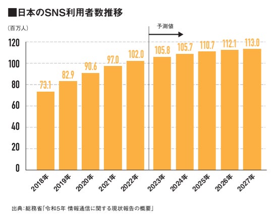 ◆2027年には利用者が1億1300万人にも。日本人のSNS利用の変化