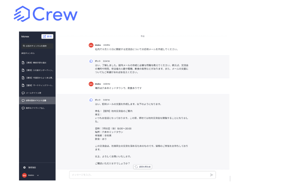 ChatGPTをビジネスで安全に活用する業務効率化ツール 「Crew」