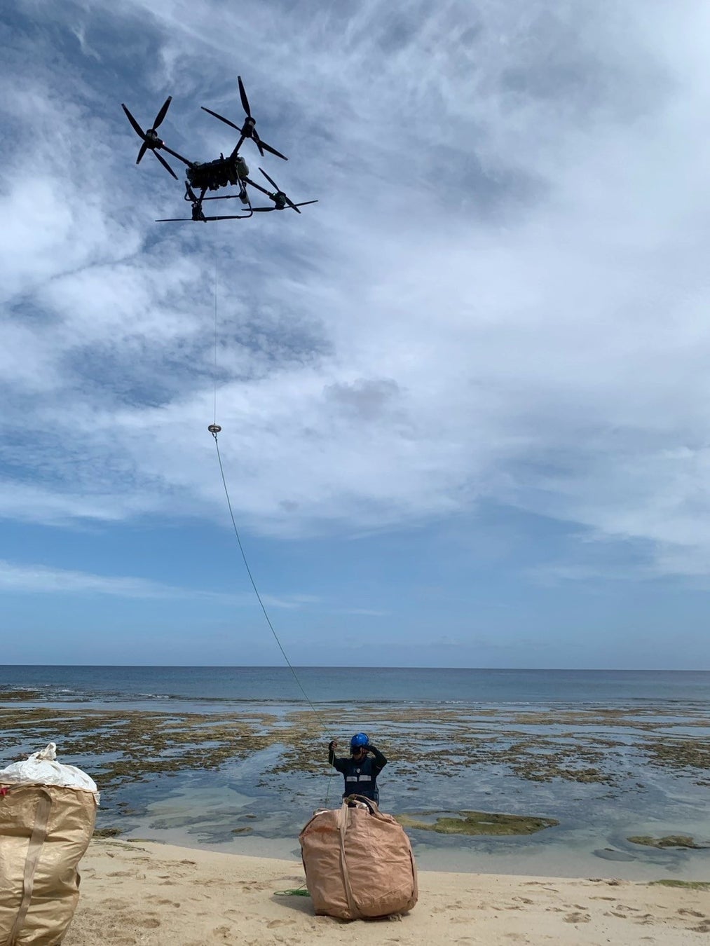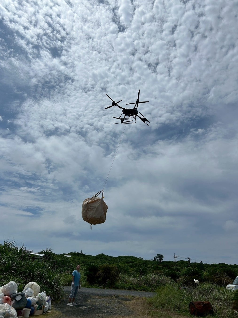 ドローンによる海洋ゴミの移送フライトを実施、1時間で約500kgの回収に成功【鹿児島県・沖永良部島】
