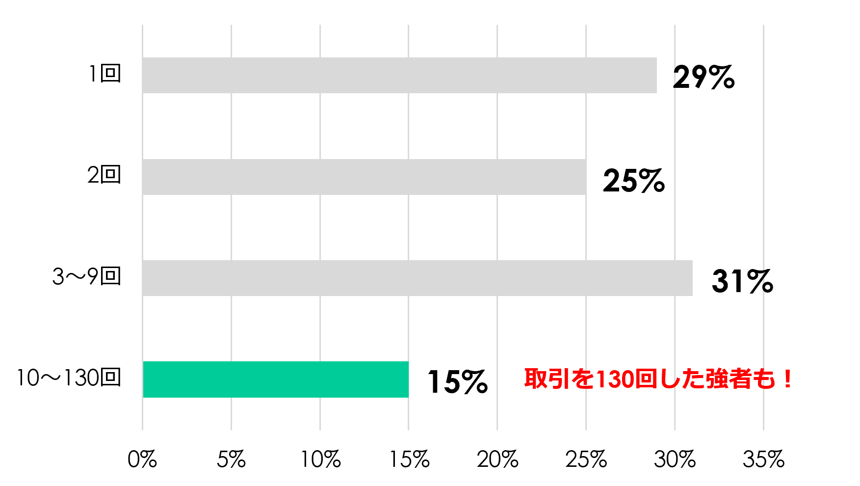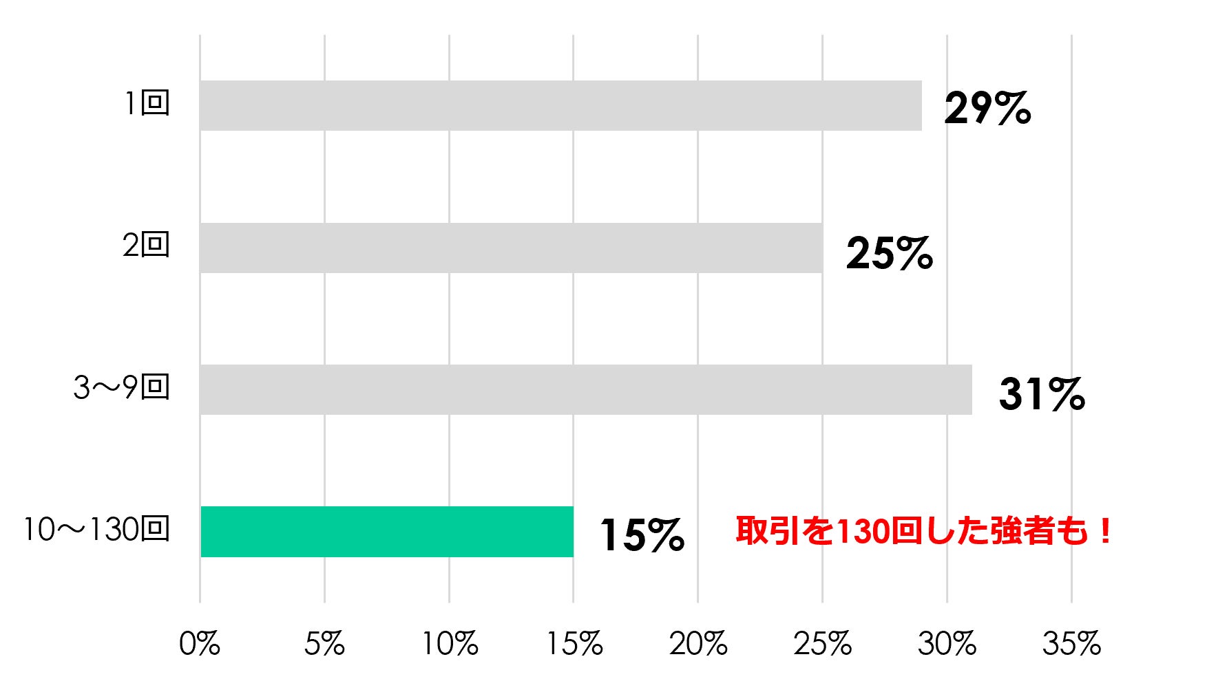 平均1~2回が50%以上を占める中、130回取引した強者も!