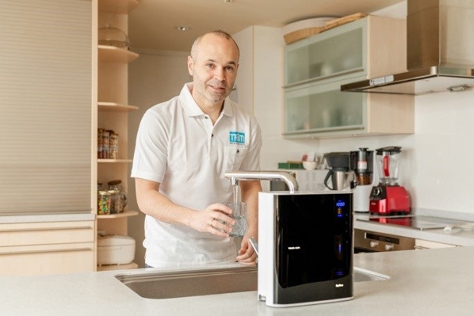 アンバサダー就任を記念して500台限定でイニエスタ選手直筆サイン入りの電解水素水整水器「トリムイオンRefine」を販売