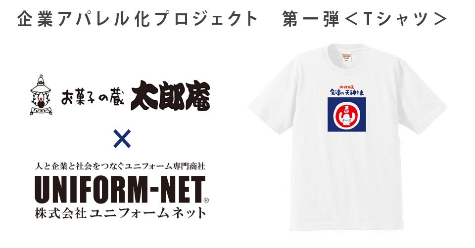 ユニフォーム専門商社の株式会社ユニフォームネットは、お客様の自社製品が持つ魅力・訴求力を最大化させる取り組みとして、『企業アパレル化プロジェクト』をスタート。福島県の銘菓「会津の天神さま(販売元:株式会社太郎庵)」をモチーフとしたTシャツを制作しました。