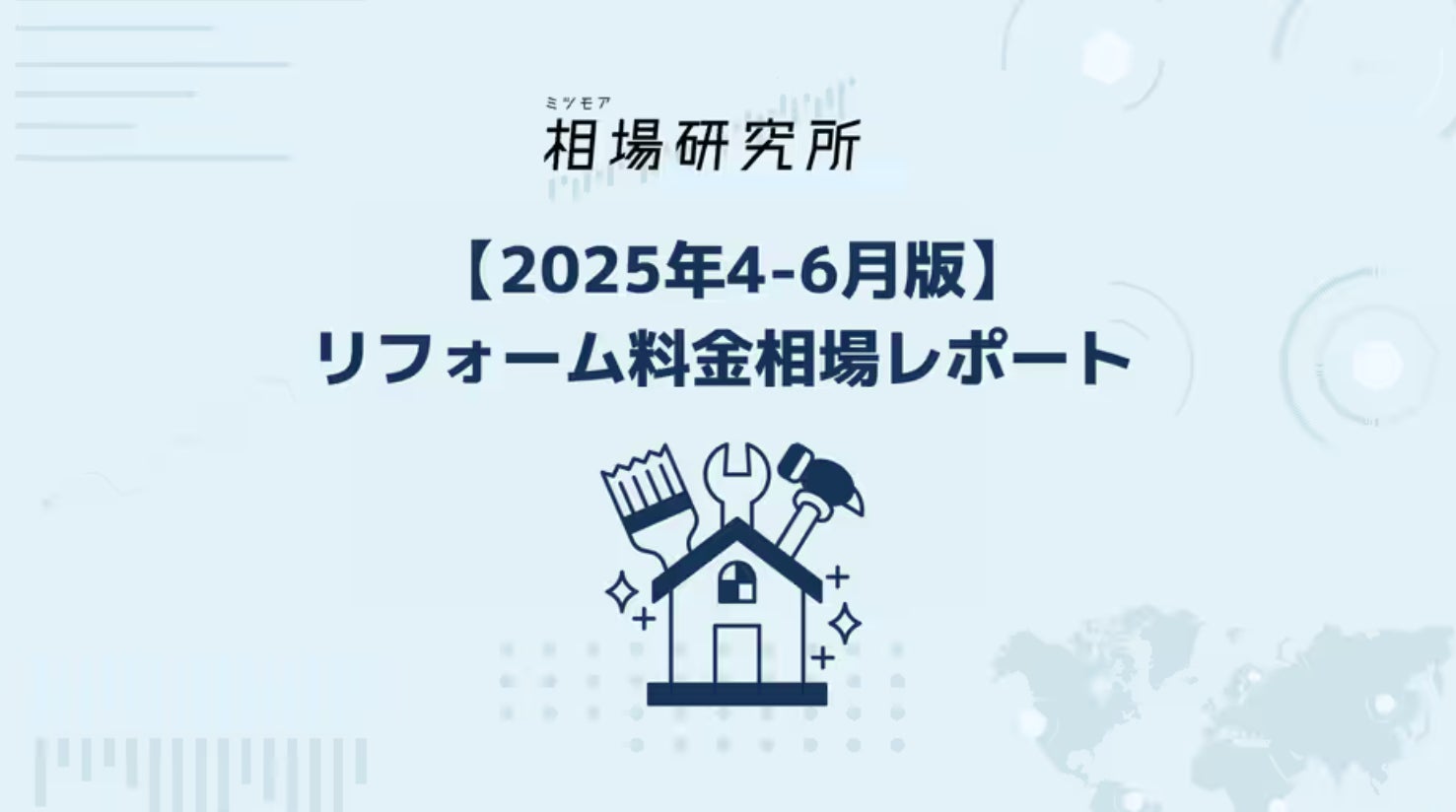 オンラインでの見積もり比較・受発注サービス「ミツモア」が運営する、株式会社ミツモア(本社:東京都中央区、代表取締役:石川 彩子、以下ミツモア)は、本日、暮らしの“リアルな相場”を独自データで映し出し、選択に安心と確信をもたらす「ミツモア相場研究所」を公開したことをお知らせいたします。また、「ミツモア相場研究所」内での公開レポートとして、引っ越し料金相場レポート【25年5-6月】と、リフォーム料金相場レポート【25年4-6月】を紹介いたします。