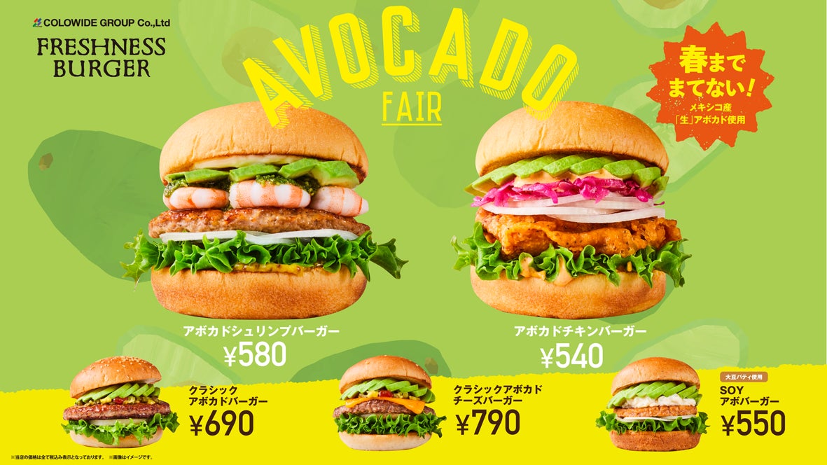 コロワイドグループの株式会社フレッシュネス(代表取締役社長:斎藤 健太朗/本社:神奈川県横浜市西区)は、2022年2月9日(水)より、全国のフレッシュネスバーガーにて、ビタミン、食物繊維などがぎっしり詰まっており、体に嬉しい栄養素が豊富なことで「スーパーフード」と呼ばれるアボカドにフォーカスを当てた5種類のバーガーが楽しめる『アボカドフェア』を、期間限定開催いたします。
