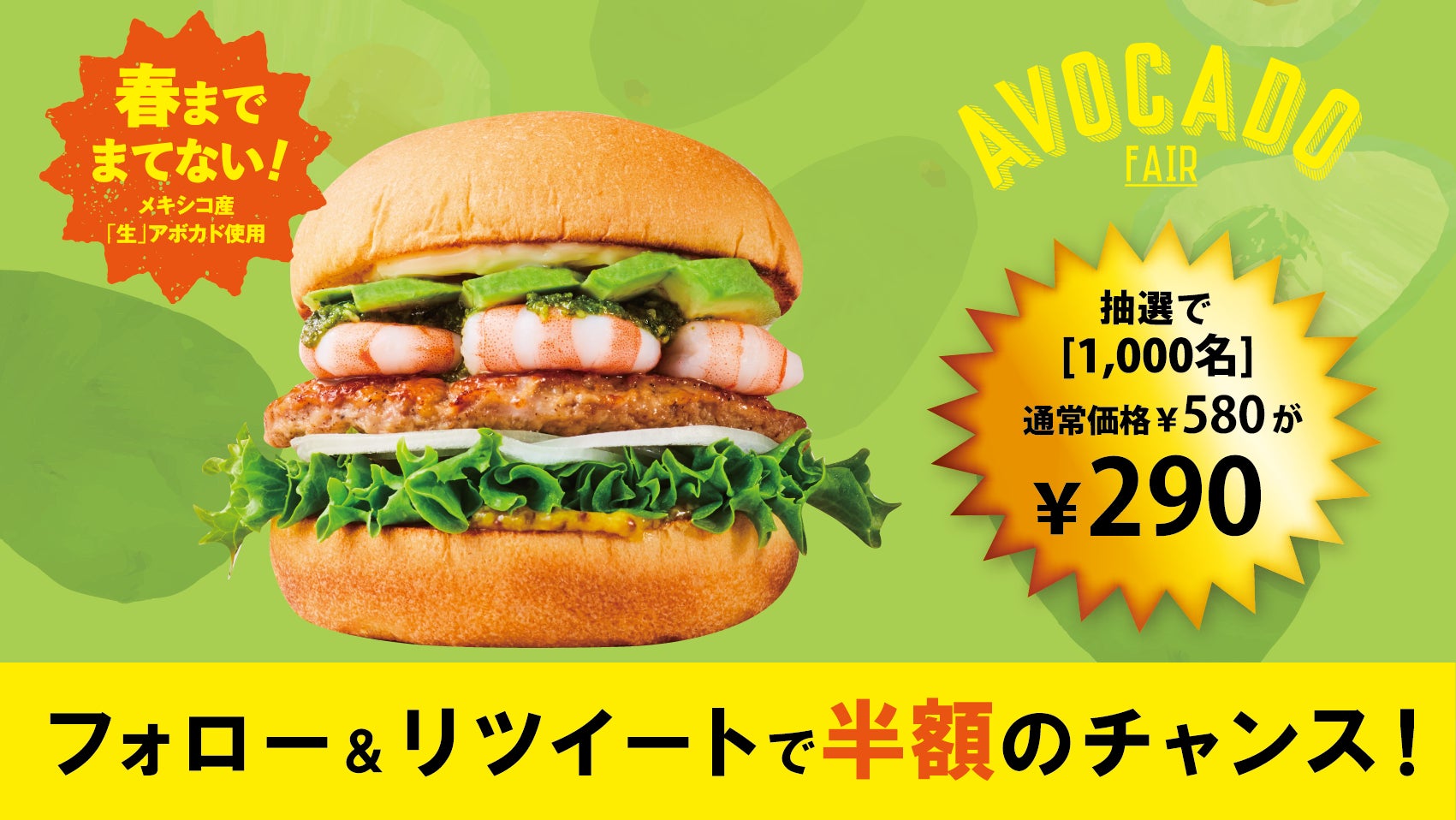 アボカドチキンバーガー半額クーポンが1000名様に当たる!