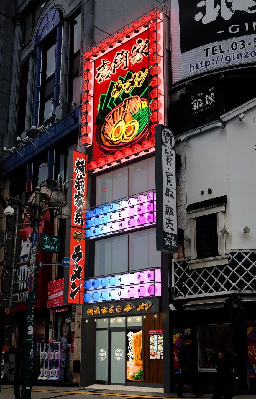 壱角家は、日本のみならず世界でも有数の乗降客数を誇る新宿駅周辺に、新宿エリア12店舗目となる「壱角家 新宿靖国通店」をオープンいたします。新宿駅東口から徒歩2分、靖国通り歌舞伎町交差点と駅近な立地に出店します。ネオン管が配置され圧倒的な存在感を放つ外観が特徴的で、入り口には高さ2mのLEDデジタルサイネージを設置。老若男女問わず、学生やサラリーマンから主婦、ご年配の方まで様々な層の方にご利用いただきたいです。