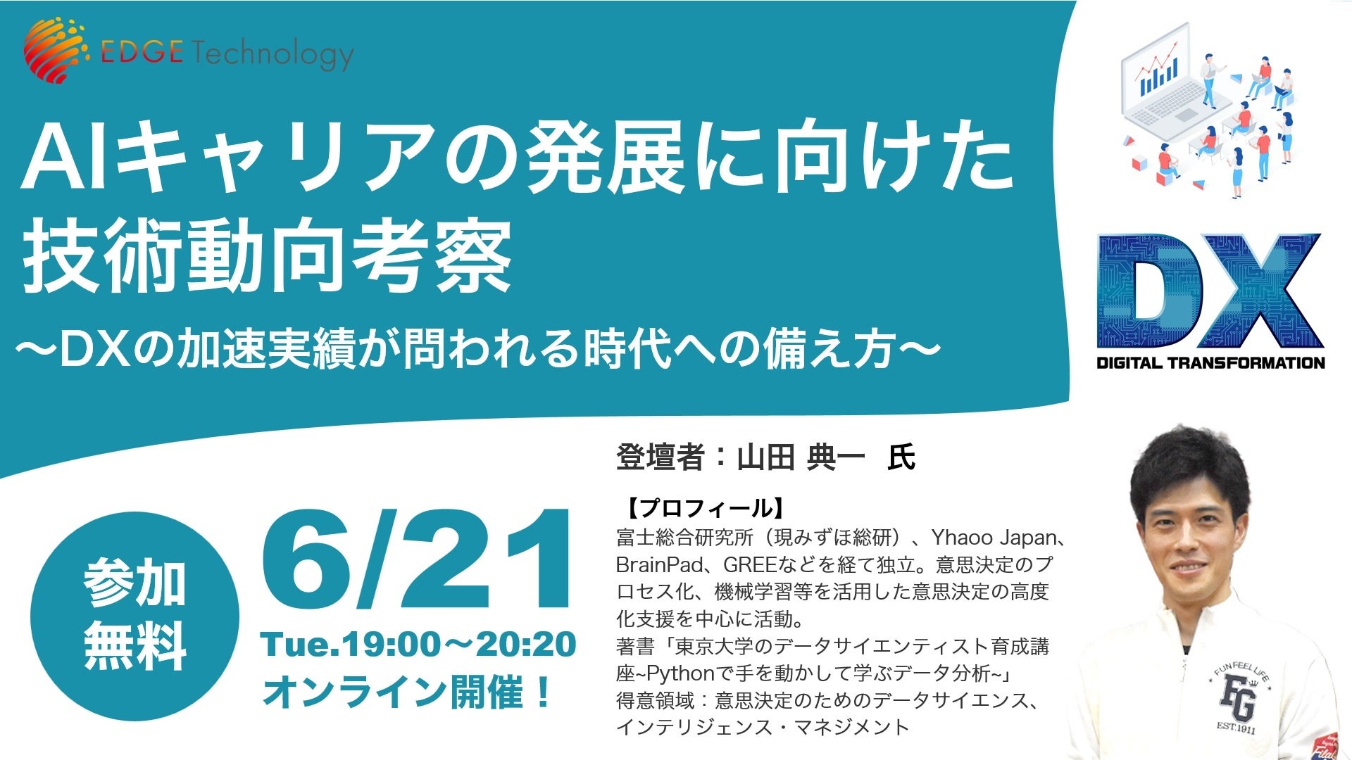 エッジテクノロジー(AIジョブカレ)がDX推進企業の実態に迫る「AIキャリアの発展に向けた技術動向考察」セミナーを無料開催