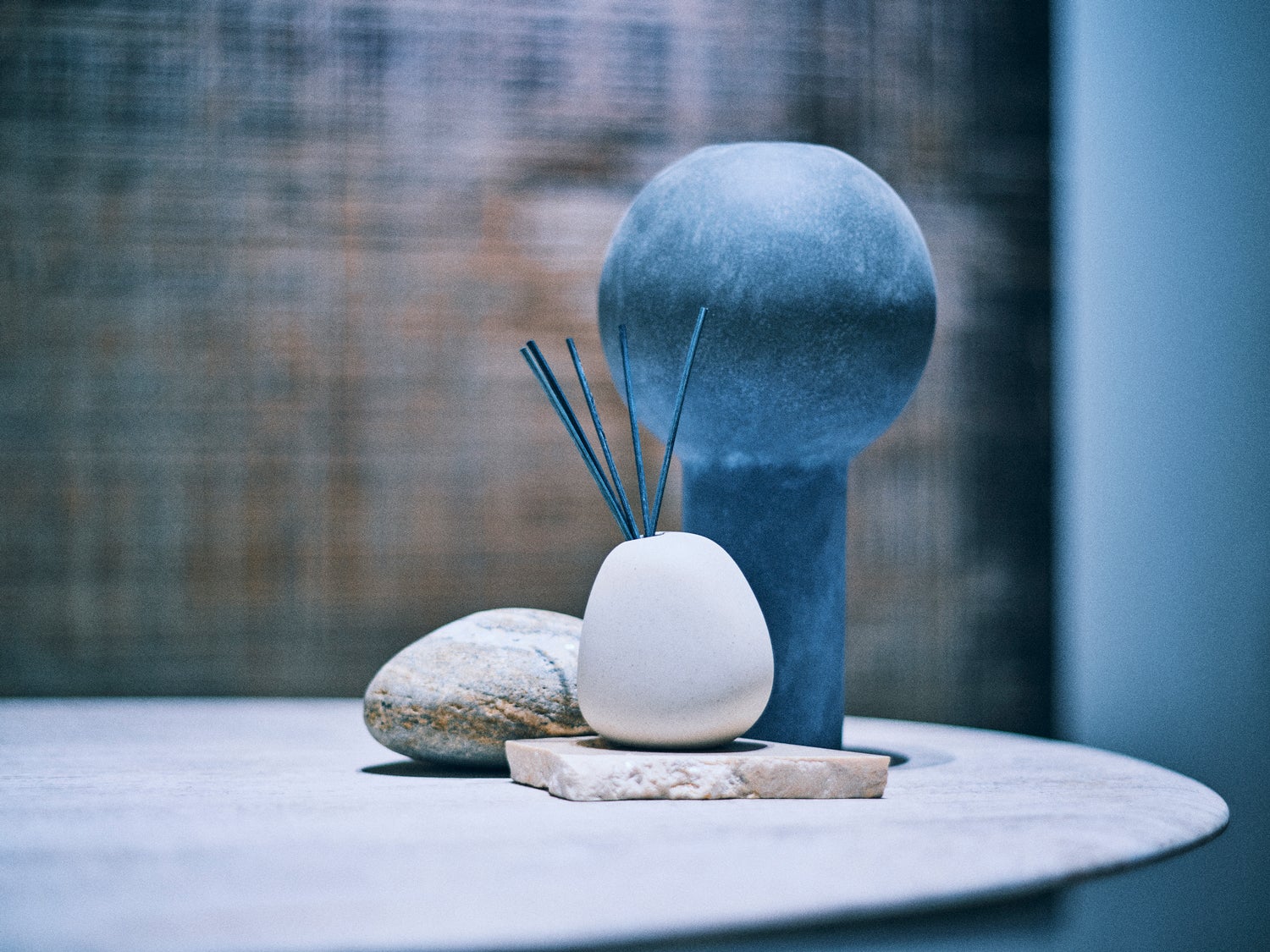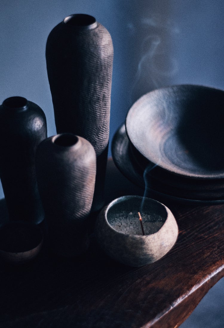 アシンメトリーなフォルム、粗野だけど滑らかでマットな土の質感が、見た目も手触りも優しさや穏やかさを表現し、居心地の良いお部屋に、香りとともに寄り添います。