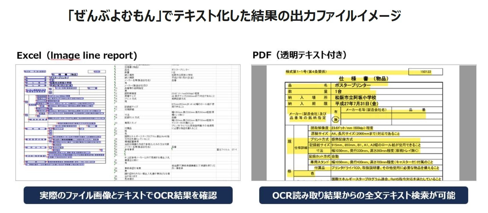 画像ファイルとテキストのOCR読み取り出力結果になります。画像とテキストでOCR 結果を確認することができます。