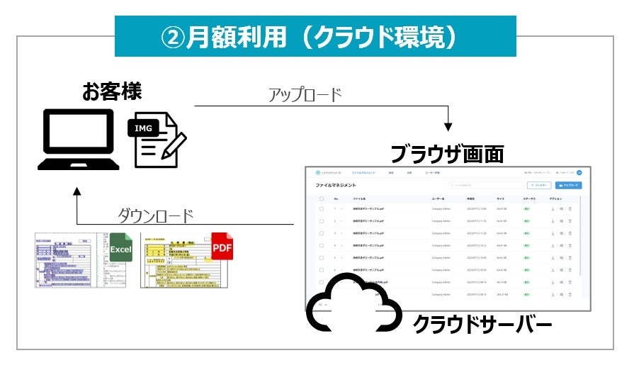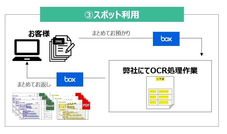 対象画像ファイルを受領し、当社でOCR処理を実行の上、まとめてお戻しするプラン