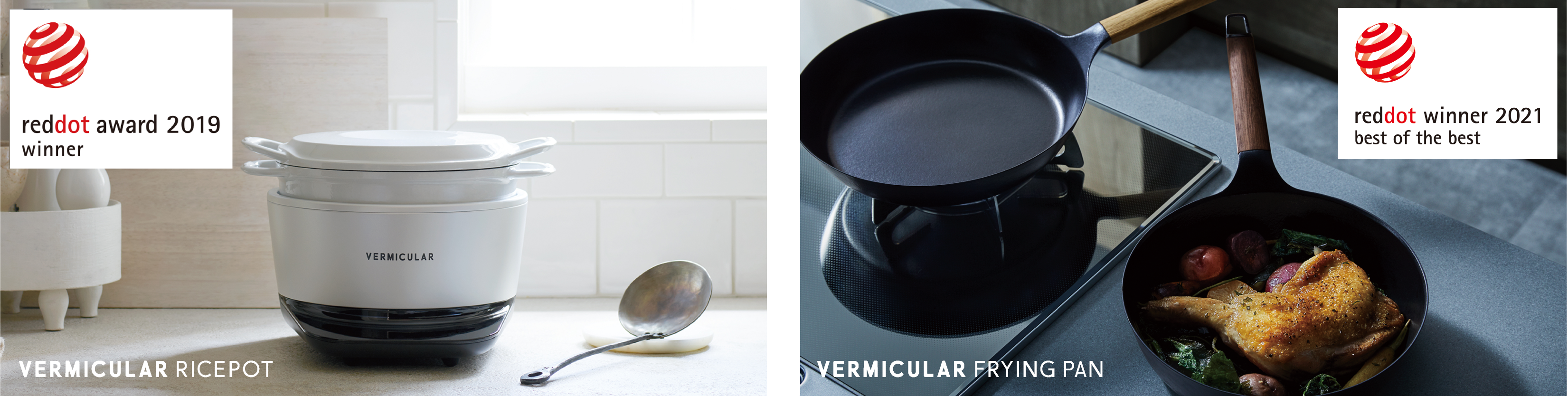 2019年に、世界初の鋳物ホーロー自動調理器「VERMICULAR Musui–Kamado」が「Red Dot Award 2019」を受賞、2021年に「バーミキュラ フライパン」が最高賞「Best of the Best」受賞に続き、今回「バーミキュラ オーブンポット2」が、バーミキュラブランドで3度目の「Red Dot Award」受賞となりました。