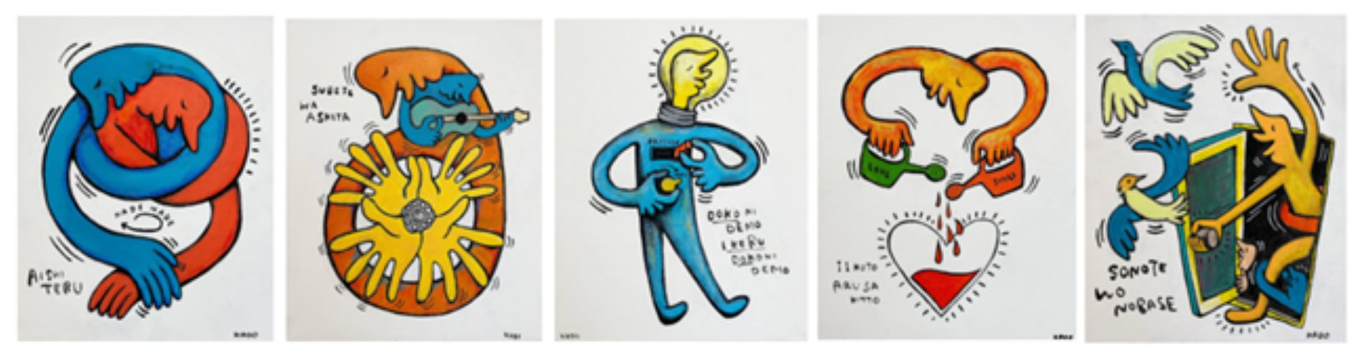 「勇気」「愛情」「希望」「幸運」「情熱」の5つのテーマで描いた絵がそれぞれ単体でありながら、連鎖して一つにまとまった絵。いろんな人たちが寄り添い合い、関わり合う様子を描いた。