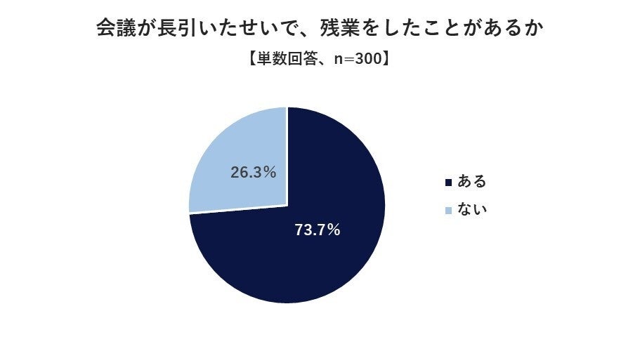 ・会議が長引いたせいで、残業をしたことがある人 73.7%