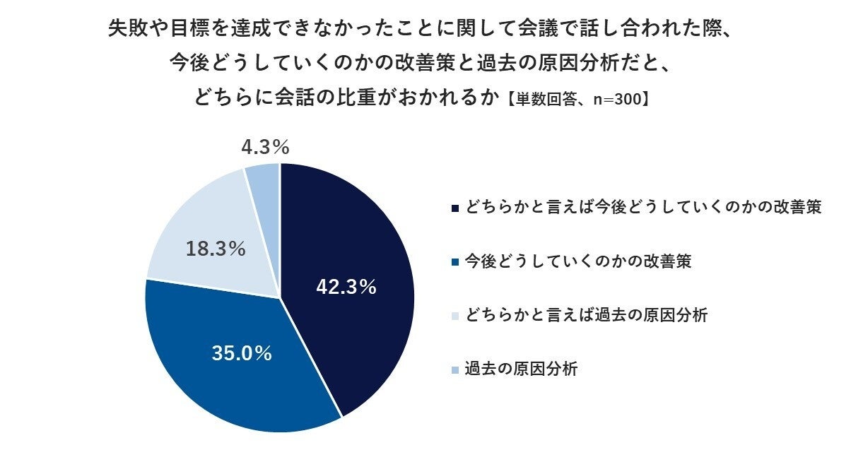 Q8. あなたがお勤めの会社では、失敗したことや目標を達成できなかったことに関して会議で話し合われた際、今後どうしていくのかの改善策と過去の原因分析だと、どちらに会話の比重がおかれますか。(単数回答、n=300)