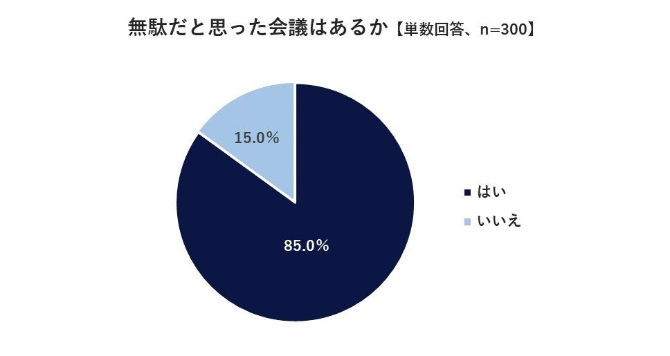 今回の調査結果から、85.0%の会社員に、会議を無駄だと思った経験があることがわかりました。