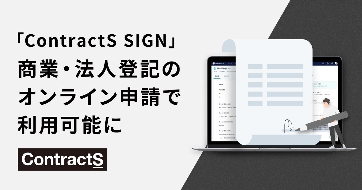 契約ライフサイクルマネジメント(Contract Lifecycle Management、以下 CLM)システム「ContractS CLM」を提供するContractS(コントラクツ)株式会社(本社:東京都千代田区、代表取締役:笹原 健太、以下 ContractS)は、ContractS CLMの事業者署名型(立会人型)電子契約機能「ContractS SIGN(コントラクツ サイン)」が商業・法人登記のオンライン申請に利用可能となりましたことをお知らせいたします。