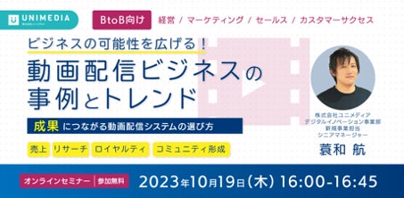 サービスのローンチに伴い、私たちは、動画配信のビジネス活用に関する新しい視点を提供するオンラインセミナーを開催いたします。このセミナーは、一般的になった動画配信という手法について、現在に至るまでの動向と課題、そして今後の展望を事例を添えてご紹介します。